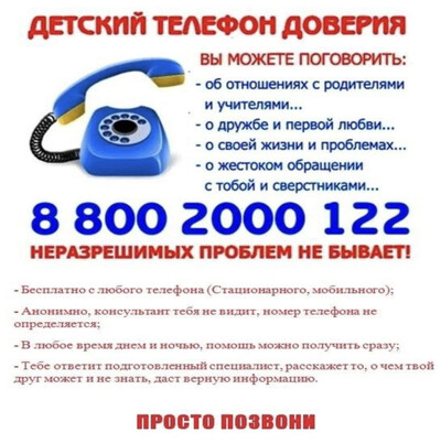 Давайте сделаем эту информацию доступной! Расскажите о Детском телефоне доверия своим друзьям, знакомым и коллегам. Помогите тем, кто рядом, узнать, что помощь всегда доступна.