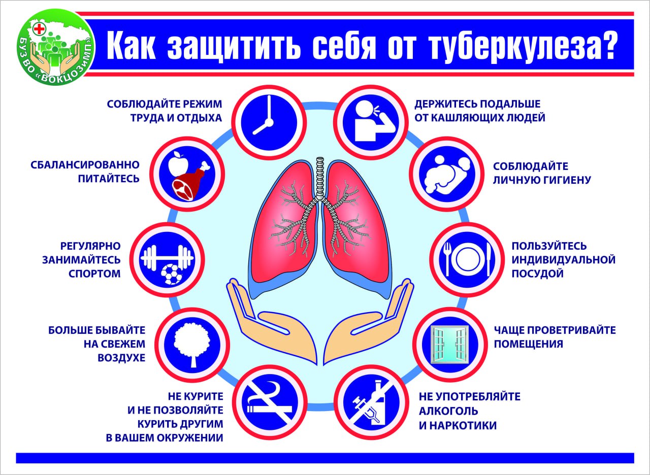 Регулярно проходите процедуры специфической профилактики – флюорографические осмотры для взрослых и противотуберкулезные прививки для детей.